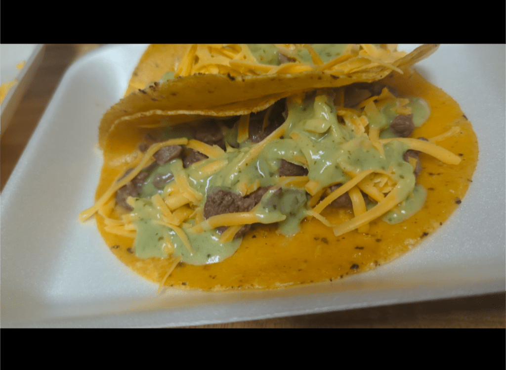I put the taco together and added some avocado and cilantro sauce that I purchased from Walmart.